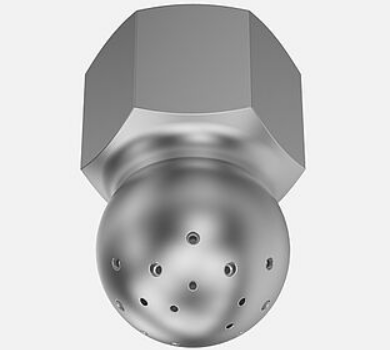 这款喷嘴能通过40个孔喷出均匀气体,形成 240°的喷射角。柱形喷口设计使其能承受极差的工况,包括浸入到液体介质。